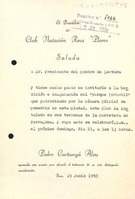 Invitació del Club Natació Reus Ploms al president del Centre de Lectura
