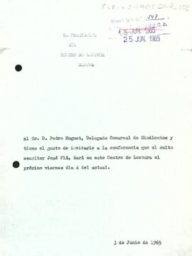 Unitat documental simple SOR, 102 - Invitació del president a Pere Huguet