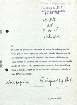 Enric Aguadé convida al lliurament de la copa oferida pel cap d'estat per al IX Concurs-Exposició Nacional de Roses la qual entregarà el governador civil.