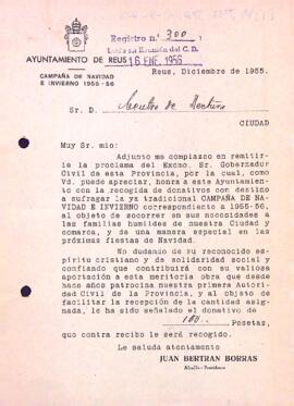 L'Ajuntament de Reus envia el fulletó de la campanya de Nadal del 1955-56, editada pel Govern Civil de Tarragona. Data del document: ?-12-1955