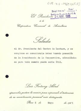 Carta de la Cooperativa Comarcal d'Avicultura al president del Centre de Lectura