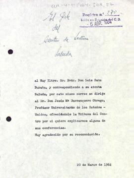 Enric Aguadé ofereix la sala del Centre de Lectura a Luis Sanz Burata per fer-hi una conferència. Data del document: 20-03-1964