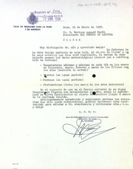 La Caja de Pensiones demana les dades meteorològiques dels mesos de desembre a març dels darrers quatre anys per un estudi que estan fent. Data del document: 25-03-1958