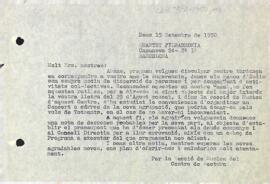 La Secció de Música respon de manera interessada a la proposta del Quartet Filharmonia de fer un concert al Centre de Lectura i els demana un pressupost. Data del document: 15-09-1950