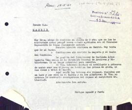 Enric Aguadé envia una carta amb algunes queixes sobre l'endarreriment de les feines d'Inmade, com ara les butaques sense muntar o materials que encara no han arribat. Data del document: 13-05-1964
