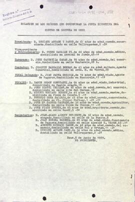 El president Aguadé firma la relació de persones que formaran la junta directiva del Centre de Lectura. Data del document: 08-06-1955