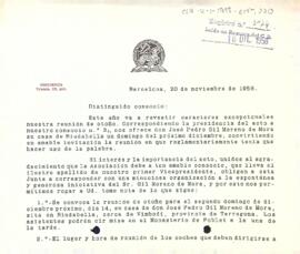 L'Associació de Bibliòfils de Barcelona envia les normes a seguir durant la reunió que tindrà lloc a casa del senyor José Pedro Gil Moreno de Mora. Data del document: 20-11-1958