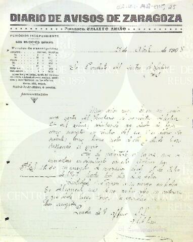 Unidad documental simple ENT, 25 - Sobre la subscripció del Diario de Avisos de Zaragoza