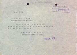 Telegrama de condol a Jesús Rubio, Ministre de Educación Nacional, per la mort de la seva mare. Data del document: 28-01-1957